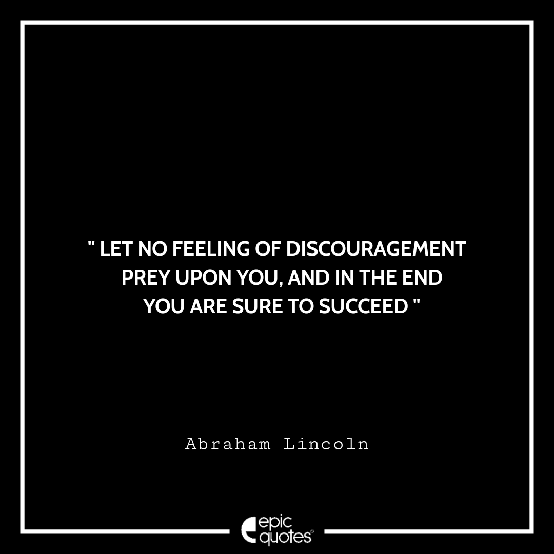 ” Let no feeling of discouragement prey upon you, and in the end you are sure to succeed. –Abraham Lincoln “