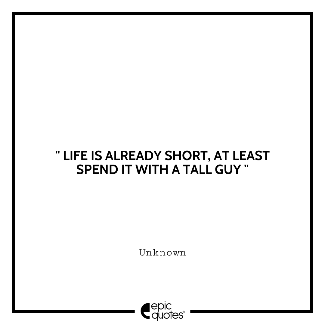 Categories Epic Quotes MainLife is already short, at least spend it with a tall guy Post author By Tanya Suyal Post date July 30, 2022 Life is already short, at least spend it with a tall guy” Life is already short, at least spend it with a tall guy “ Lets be social: 1.4M+ Fans 450K+ Followers Tags Epic Quotes, Inspiring, Life, Life Quotes, quotes ← 11 Thought provoking quotes from Lycoris Recoil → 15 Umbrella Academy Quotes Related articles Sorry I’m Late, I was Hoping the Plan Would be Canceled Don’t cry over what has happened; great things are ahead Kindle, paperbacks, or do you not read at all? Is it just me or does everyone have a second dinner? What’s your first thought every morning after waking up? I miss my lost friendships more than anything else