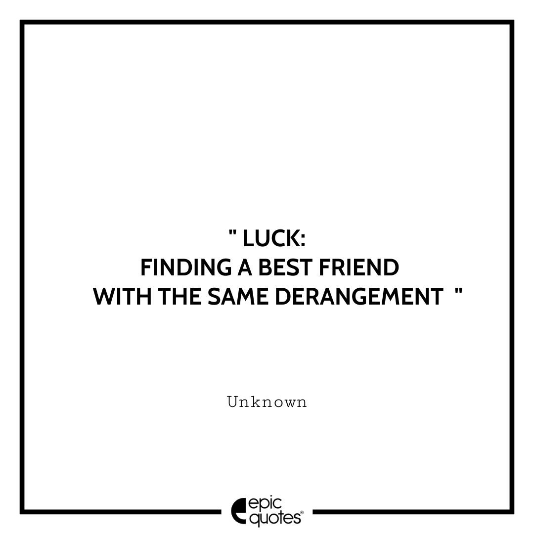 Categories Epic Quotes MainLuck Finding a best friend with the same derangement Post author By Tanya Suyal Post date April 9, 2022 Luck Finding a best friend with the same derangement” Luck Finding a best friend with the same derangement “ Lets be social: 1.4M+ Fans 450K+ Followers Tags Epic Quotes, Funny Quotes, Inspiring, Life, Life Quotes, quotes ← Having someone to talk to from good morning to sleep well is priceless → 10 Badass Beth Dutton Quotes From Yellowstone Related articles Sorry I’m Late, I was Hoping the Plan Would be Canceled Don’t cry over what has happened; great things are ahead Kindle, paperbacks, or do you not read at all? Is it just me or does everyone have a second dinner? What’s your first thought every morning after waking up? I miss my lost friendships more than anything else