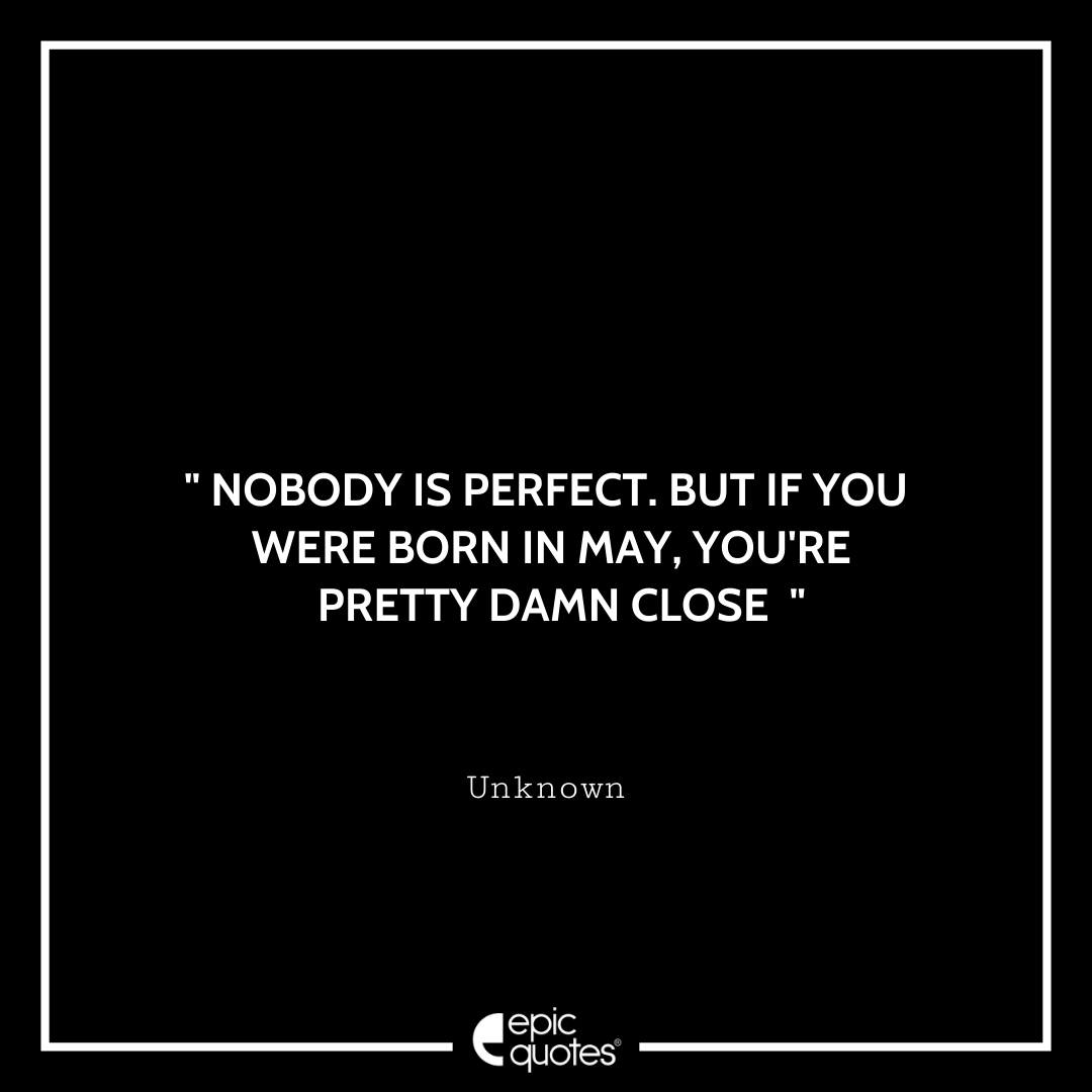 Categories Epic Quotes MainNobody is perfect. But if you were born in May, you’re pretty Damn Close Post author By Tanya Suyal Post date May 3, 2022 Nobody is perfect. But if you were born in May, you're pretty Damn Close” Nobody is perfect. But if you were born in May, you’re pretty Damn Close “ Lets be social: 1.4M+ Fans 450K+ Followers Tags Epic Quotes, Funny Quotes, Inspiring, Life, Life Quotes, quotes ← 15 Quotes That Will Make You Fall In love With Sunsets → 15 Quotes For You Girls that will make you feel like a Queen Related articles Sorry I’m Late, I was Hoping the Plan Would be Canceled Don’t cry over what has happened; great things are ahead Kindle, paperbacks, or do you not read at all? Is it just me or does everyone have a second dinner? What’s your first thought every morning after waking up? I miss my lost friendships more than anything else