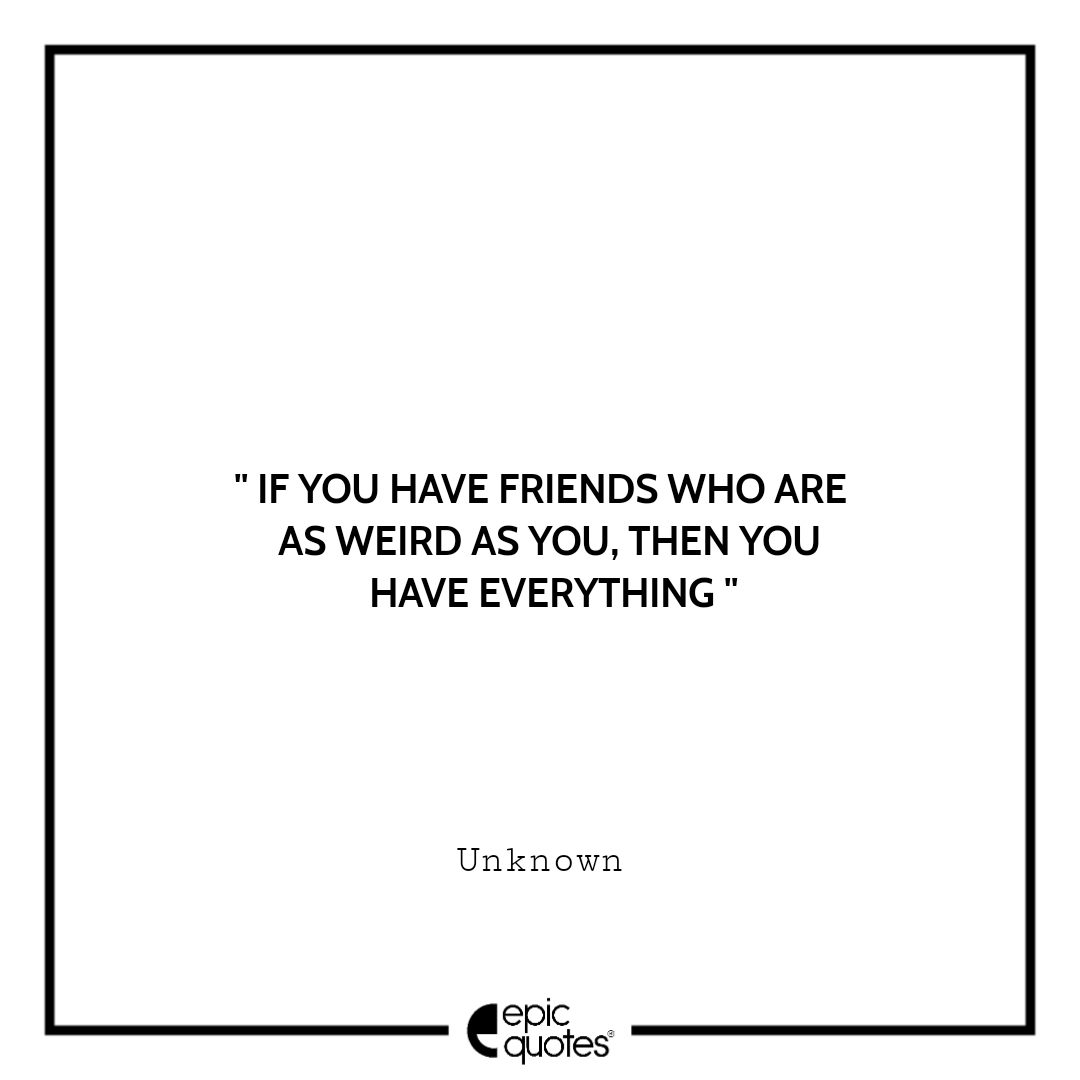 If you have friends who are as weird as you, then you have everything. -Unknown Categories Friends " If you have friends who are as weird as you, then you have everything. -Unknown " Post author By Chirag Malik Post date January 27, 2021