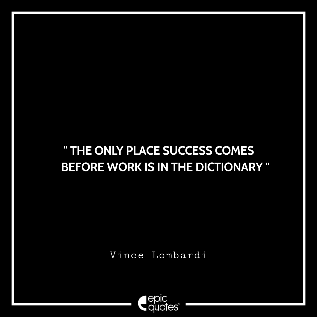 Categories Vince LombardiThe only place success comes before work is in the dictionary. -Vince Lombardi Post author By Shubham Post date October 28, 2020 The only place success comes before work is in the dictionary. -Vince Lombardi” The only place success comes before work is in the dictionary. -Vince Lombardi “ Lets be social: 1.4M+ Fans 450K+ Followers ← Perfection is not attainable, but if we chase perfection, we can catch excellence. -Vince Lombardi → The real glory is being knocked to your knees and then coming back, that’s real glory, that’s the essence of it. -Vince Lombardi Related articles Character is just another word for having a perfectly disciplined and educated will. -Vince Lombardi If you can shrug off a loss, you can’t be a winner. -Vince Lombardi We run to win, not just to be in the race. -Vince Lombardi Some of us will do our jobs well and some will not, but we will be judged by only one thing-the result. Vince Lombardi Practice does not make perfect. Only perfect practice makes perfect. Vince Lombardi Winning is a habit, unfortunately, so is losing. -Vince Lombardi