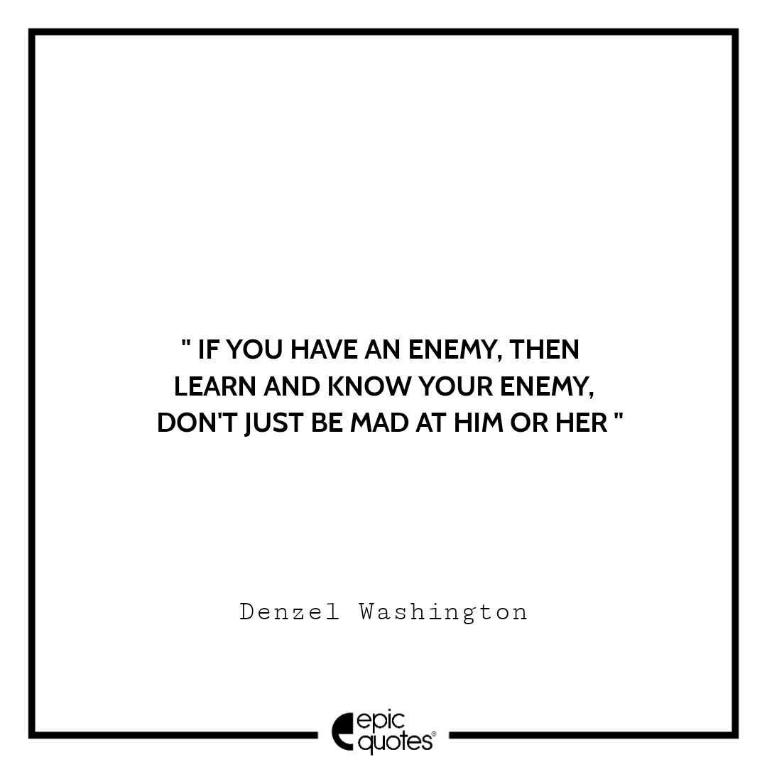 8 If you have an enemy, then learn and know your enemy, don’t just be mad at him or her. -Denzel Washington