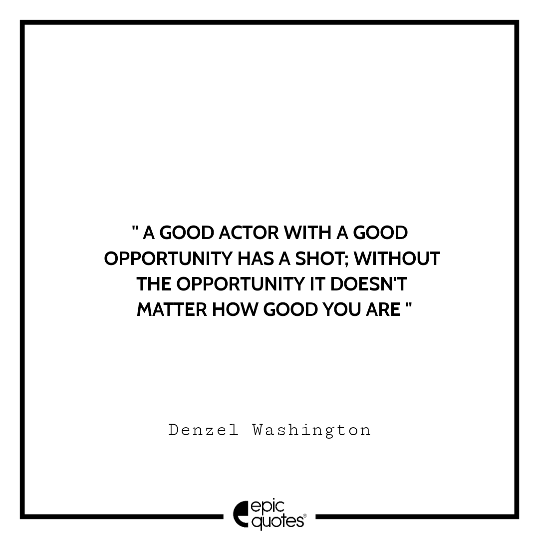 12 A good actor with a good opportunity has a shot; without the opportunity it doesn’t matter how good you are. -Denzel Washington