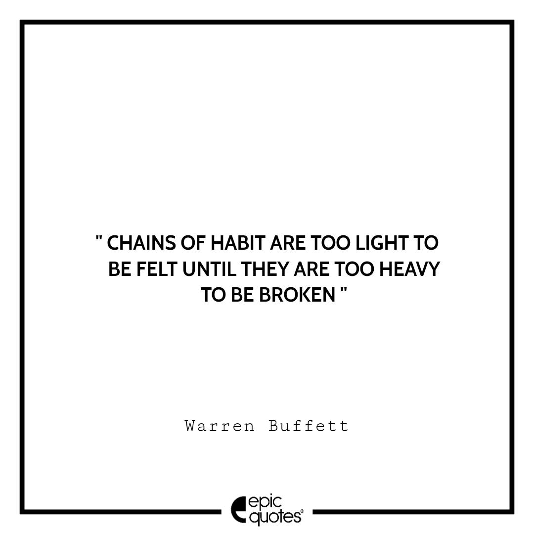 6. Chains of habit are too light to be felt until they are too heavy to be broken. –Warren Buffett