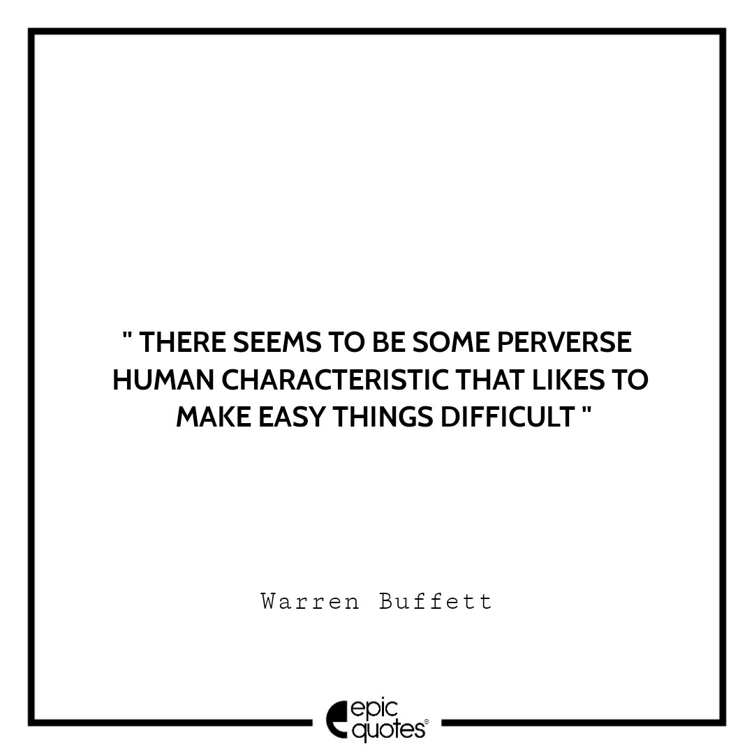 11 . There seems to be some perverse human characteristic that likes to make easy things difficult. –Warren Buffett
