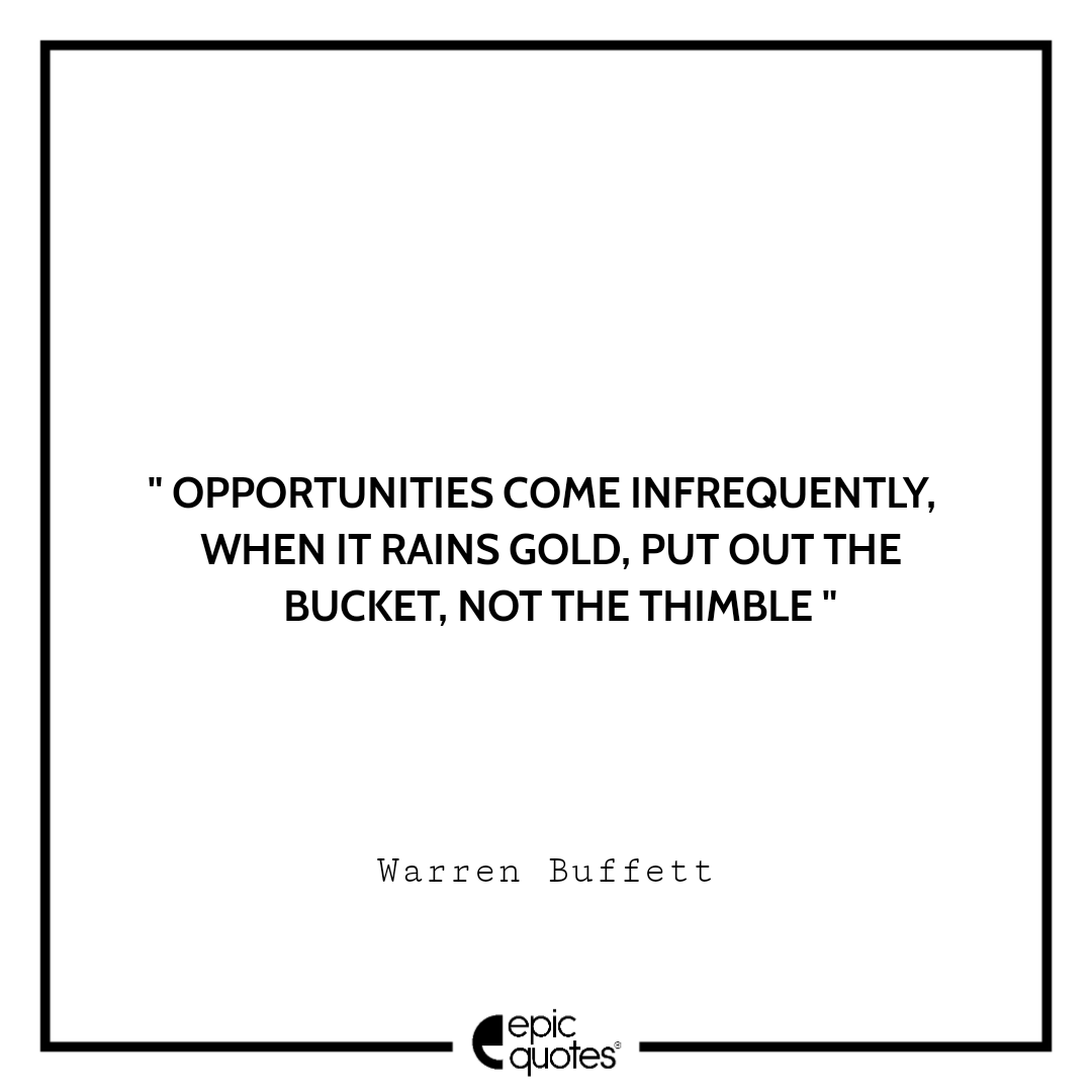 12 . Opportunities come infrequently. When it rains gold, put out the bucket, not the thimble. –Warren Buffett