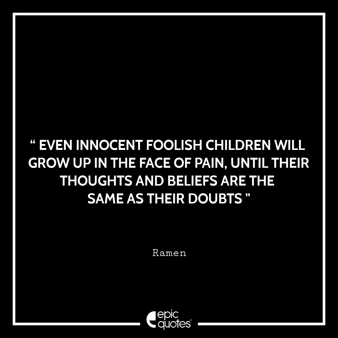 10. Even innocent foolish children will grow up in the face of pain, Until their thoughts and beliefs are the same as their doubts