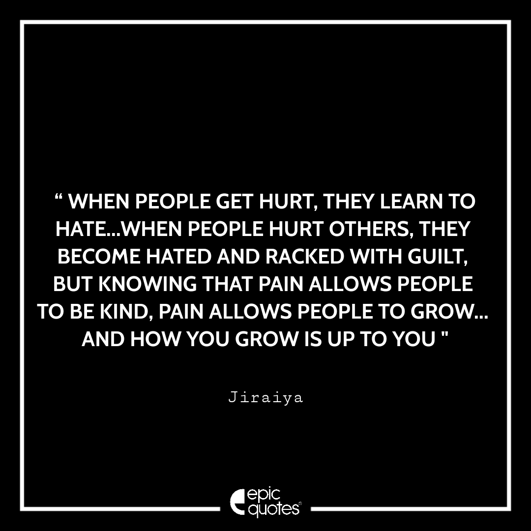 7 When people get hurt, they learn to hate… when people hurt others, they become hated and racked with guilt. But knowing that pain allows people to be kind. Pain allows people to grow… and how you grow is up to you