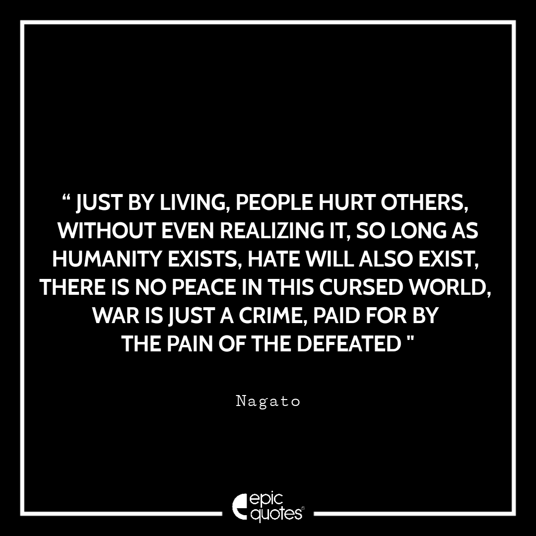 5 Just by living, people hurt others, without even realizing it. So long as humanity exists, hate will also exist. There is no peace in this cursed world. War is just a crime, paid for by the pain of the defeated