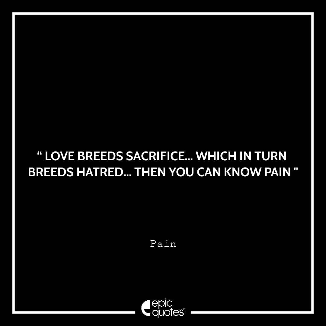 4. Love breeds sacrifice… Which in turn breeds hatred… Then you can know pain