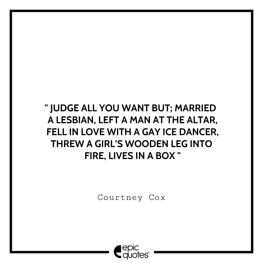 14. Judge all you want but; married a lesbian, left a man at the altar, fell in love with a gay ice dancer, threw a girl’s wooden leg into fire, lives in a box. -Courtney Cox
