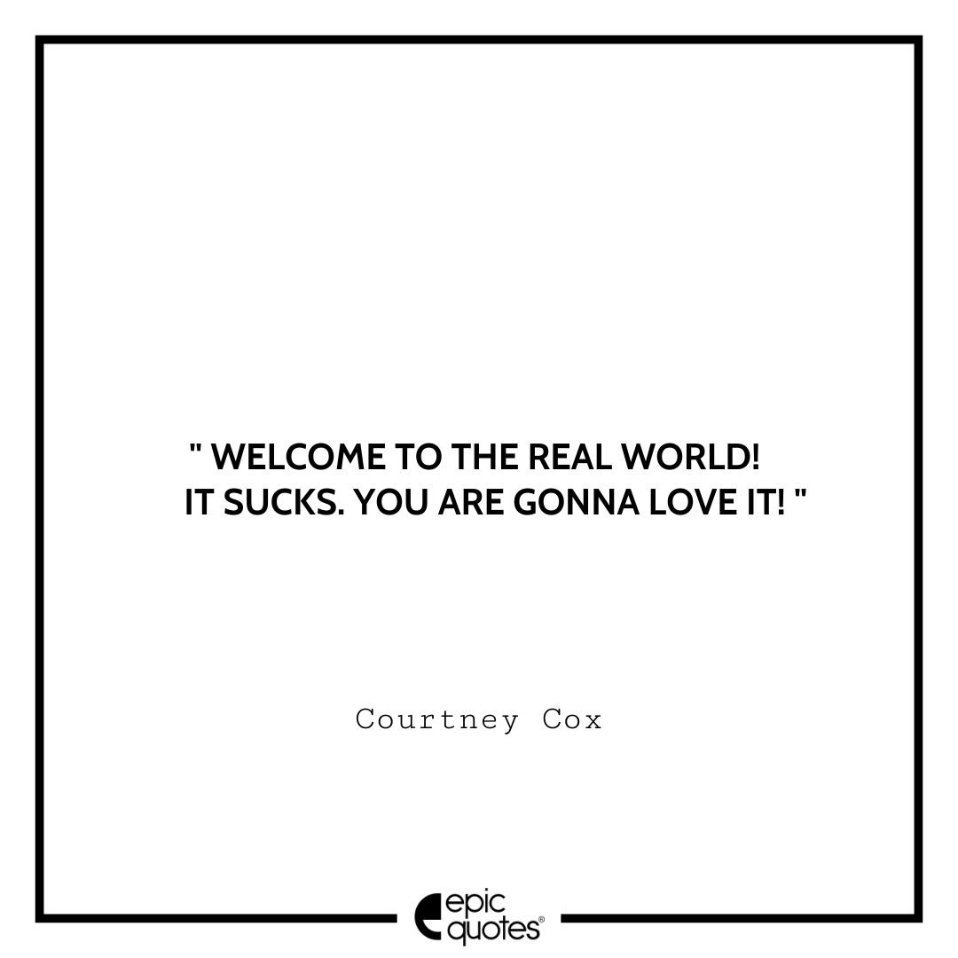 15. Welcome to the real world! It sucks. You are gonna love it! -Courtney Cox