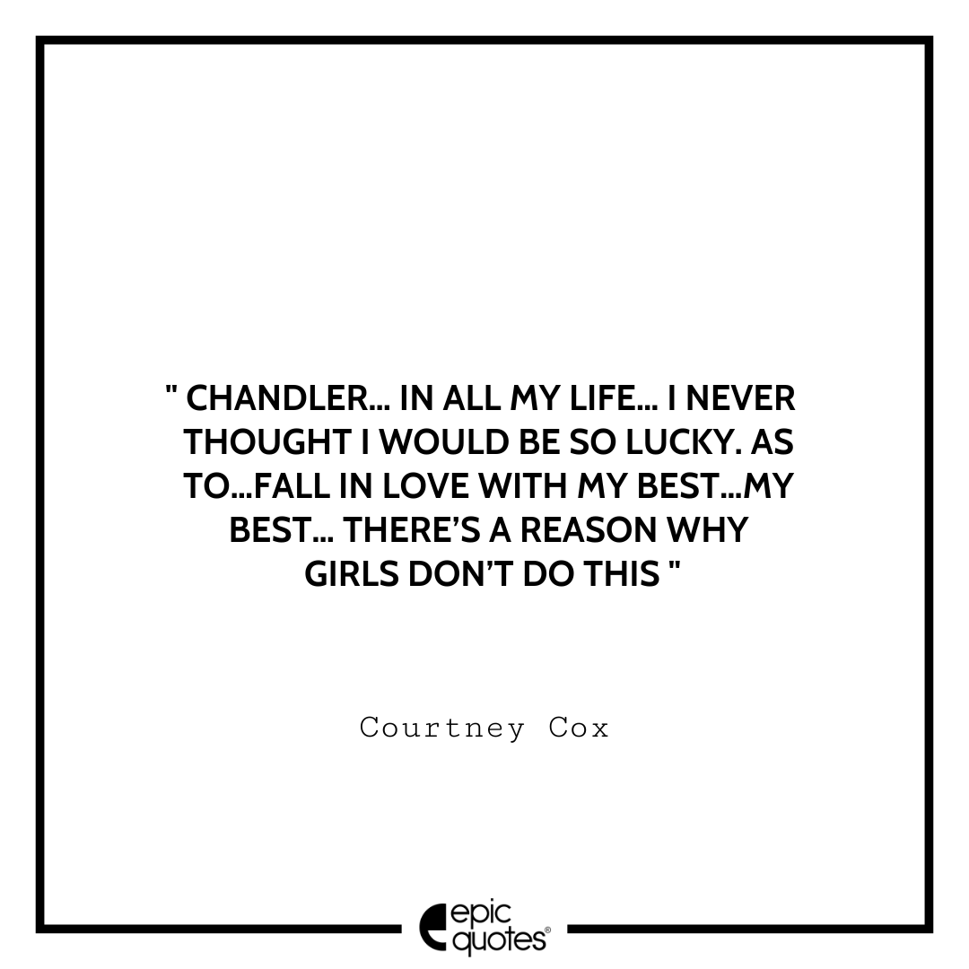 18. Chandler… In all my life… I never thought I would be so lucky. As to…fall in love with my best…my best… There’s a reason why girls don’t do this. -Courtney Cox