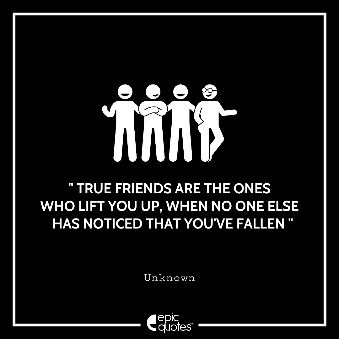 Categories Epic Quotes Main FriendsTrue friends are the ones who lift you up, when no one else has noticed that you’re fallen Post author By Sanjay Dubey Post date November 6, 2021 True friends are the ones who lift you up, when no one else has noticed that you're fallen” True friends are the ones who lift you up, when no one else has noticed that you’re fallen “ Lets be social: 1.4M+ Fans 450K+ Followers Tags Epic Quotes, Friendship Quotes, Inspiring, Life Quotes, quotes ← 15 Beautiful Happy Diwali Wishes, Greetings and Quotes → 30 Most Memorable Marvel’s Eternals Quotes From The Movie Related articles Sorry I’m Late, I was Hoping the Plan Would be Canceled Don’t cry over what has happened; great things are ahead Kindle, paperbacks, or do you not read at all? Is it just me or does everyone have a second dinner? What’s your first thought every morning after waking up? I miss my lost friendships more than anything else