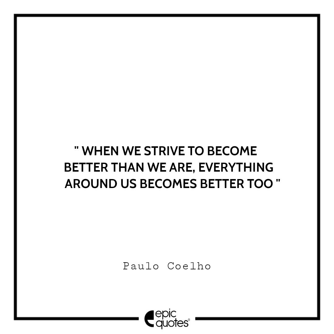 Categories TuesdayWhen we strive to become better than we are, everything around us becomes better too. -Paulo Coelho Post author By Shubham Post date April 1, 2022 When we strive to become better than we are, everything around us becomes better too. -Paulo Coelho” When we strive to become better than we are, everything around us becomes better too. -Paulo Coelho “ Lets be social: 1.4M+ Fans 450K+ Followers ← Man is only truly great when he acts from the passions -Benjamin Disraeli → It’s life, you don’t figure it out, you just climb up on the beast and ride. -Rebecca Wells Related articles Luck is a matter of preparation meeting opportunity. -Seneca Life’s like a movie, write your own ending, keep believing, keep pretending. -Jim Hensen It is by going down into the abyss that we recover the treasures of life, where you stumble, there lies your treasure. -Joseph Campbell It’s life, you don’t figure it out, you just climb up on the beast and ride. -Rebecca Wells Man is only truly great when he acts from the passions -Benjamin Disraeli Ignorance and fear are but matters of the mind—and the mind is adaptable. -Daniel Kish