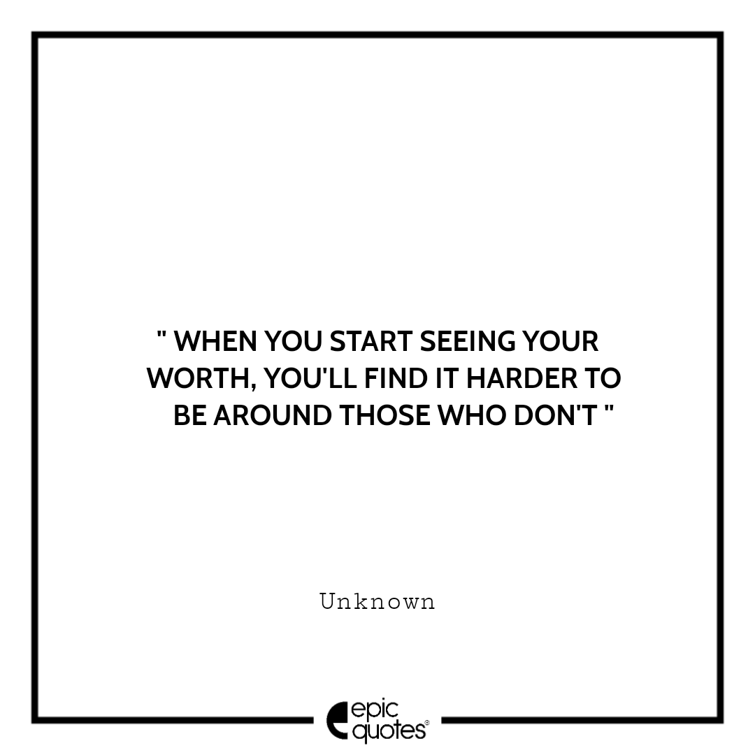 Categories LifeWhen you start seeing your worth, you’ll find it harder to be around those who don’t. Post author By Shubham Post date January 29, 2021 When you start seeing your worth, you'll find it harder to be around those who don't.” When you start seeing your worth, you’ll find it harder to be around those who don’t. “ Lets be social: 1.4M+ Fans 450K+ Followers ← And one day your name didn’t make me smile anymore → The human body has 7 trillion nerves and some people manage to get on every single one of them. Related articles I call myself an overthinker and still make the wrong decisions Sometimes, the person you want the most is the person you are best without Silence is not empty, it is the loudest answer People say life goes on, and I think that’s the saddest part Some people come into your life just to teach you how to let go. The past is a place of reference, not a place of residence.