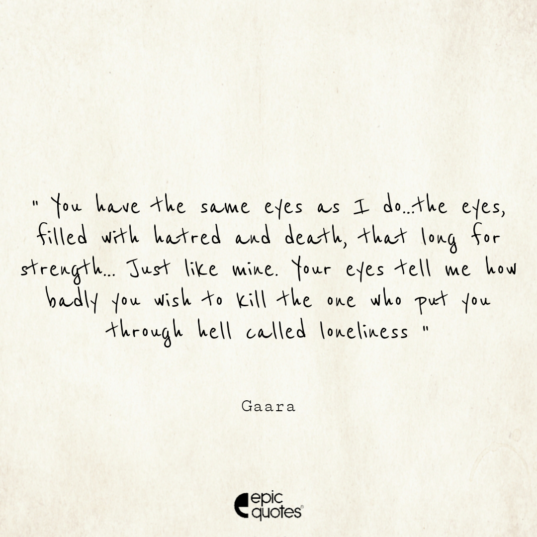 You have the same eyes as I do…the eyes, filled with hatred and death, that long for strength… Just like mine. Your eyes tell me how badly you wish to kill the one who put you through hell called loneliness.”